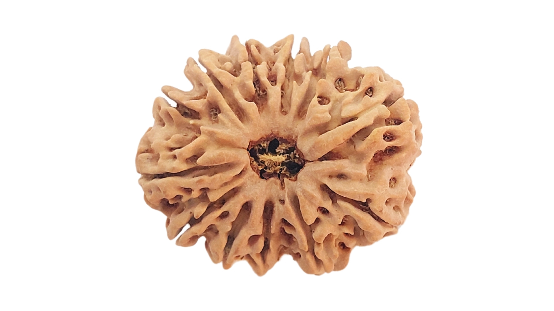 This Rudraksha is particularly beneficial for those dealing with digestive disorders, heart-related issues, and vision problems. It is also known to improve overall vitality and energy levels. The 12 Mukhi Rudraksha balances the Manipura (Solar Plexus) Chakra, promoting self-esteem, confidence, and overall health.